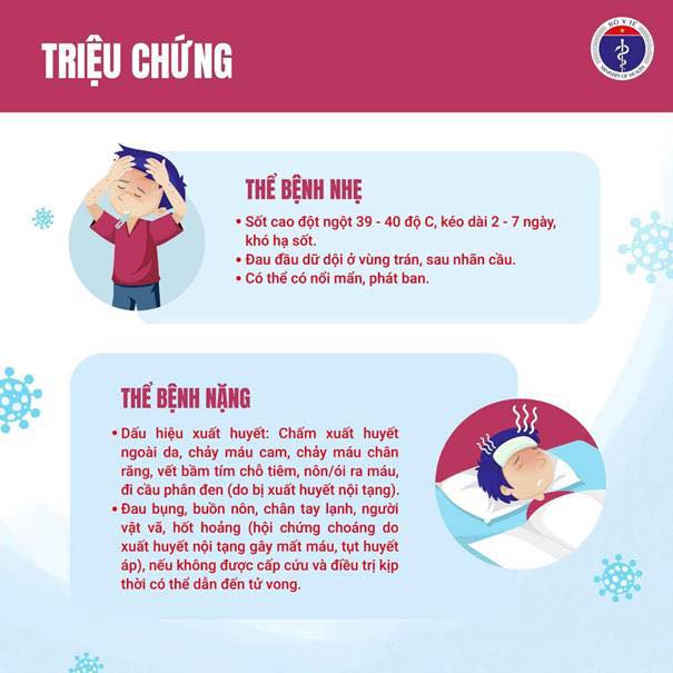 SỐT XUẤT HUYẾT VÀ NHỮNG ĐIỀU CẦN BIẾT 1. Sốt xuất huyết là gì? Sốt xuất huyết là bệnh truyền nhiễm cấp tính do virus Dengue gây ra, muỗi vằn Aedes aegypti là trung gian truyền bệnh. Bệnh xảy ra quanh năm, nhưng tăng cao vào mùa mưa 2. Đường lây truyền Muỗi vằn hút máu người bệnh nhiễm virus Dengue, sau đó đốt người lành và truyền bệnh. Bệnh không lây trực tiếp từ người sang người, mà chỉ lây qua muỗi đốt. 3. Dấu hiệu nhận biết sớm - Giai đoạn đầu (1–3 ngày đầu): • Sốt cao đột ngột, liên tục 39–40°C. • Đau đầu, đau hốc mắt, mệt mỏi, chán ăn. • Có thể đau cơ, đau khớp, buồn nôn. - Giai đoạn cảnh báo (ngày 3–7): • Dấu hiệu nguy hiểm: vật vã, lừ đừ, đau bụng, nôn nhiều, chảy máu chân răng, chảy máu cam, xuất huyết dưới da. • Bé có thể không sốt nhưng bệnh vẫn nặng lên. - Giai đoạn hồi phục: Sau 7 ngày, bệnh nhân đỡ sốt, thèm ăn trở lại, đi tiểu nhiều hơn. 4. Biến chứng nguy hiểm Nếu không được phát hiện và điều trị kịp thời, bệnh có thể gây: • Sốc (trụy tim mạch). • Xuất huyết nội tạng. • Suy gan, suy thận, suy đa cơ quan. Có thể dẫn đến tử vong nếu không điều trị đúng cách. 5. Khi nào cần đi khám ngay • Sốt cao liên tục trên 2 ngày không giảm. • Có dấu hiệu chảy máu, đau bụng, nôn nhiều, lừ đừ, tay chân lạnh, tiểu ít. • Không tự ý dùng thuốc hạ sốt khác ngoài paracetamol. • Không dùng aspirin, ibuprofen vì dễ gây chảy máu. 6. Phòng bệnh sốt xuất huyết Không có thuốc đặc hiệu và vắc xin sử dụng rộng rãi → phòng bệnh là quan trọng nhất. Biện pháp 3 Không – 3 Có: Ba không: 1. Không để muỗi đốt. 2. Không có lăng quăng, bọ gậy trong dụng cụ chứa nước. 3. Không để nước đọng quanh nhà. Ba có: 1. Có màn, kem chống muỗi khi ngủ, cả ban ngày. 2. Có nắp đậy kín các dụng cụ chứa nước. 3. Có lịch dọn vệ sinh định kỳ mỗi tuần: • Lật úp dụng cụ chứa nước không dùng. • Thay nước bình hoa, bể cảnh. • Bỏ rác, chai lọ, vỏ lon, lốp xe cũ… 7. Thông điệp truyền thông Không có lăng quăng – Không có sốt xuất huyết Diệt muỗi, diệt bọ gậy – Bảo vêk sức khỏe cộng đồng !
