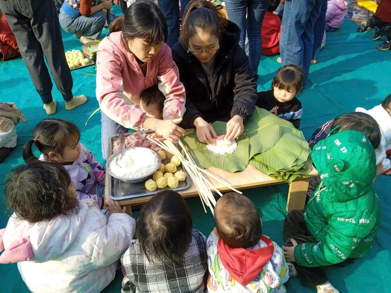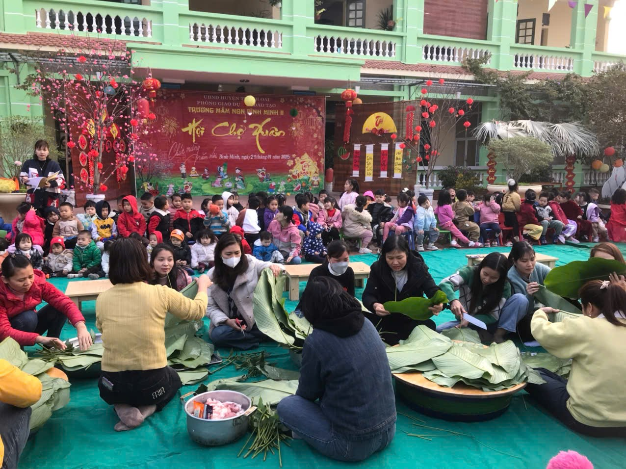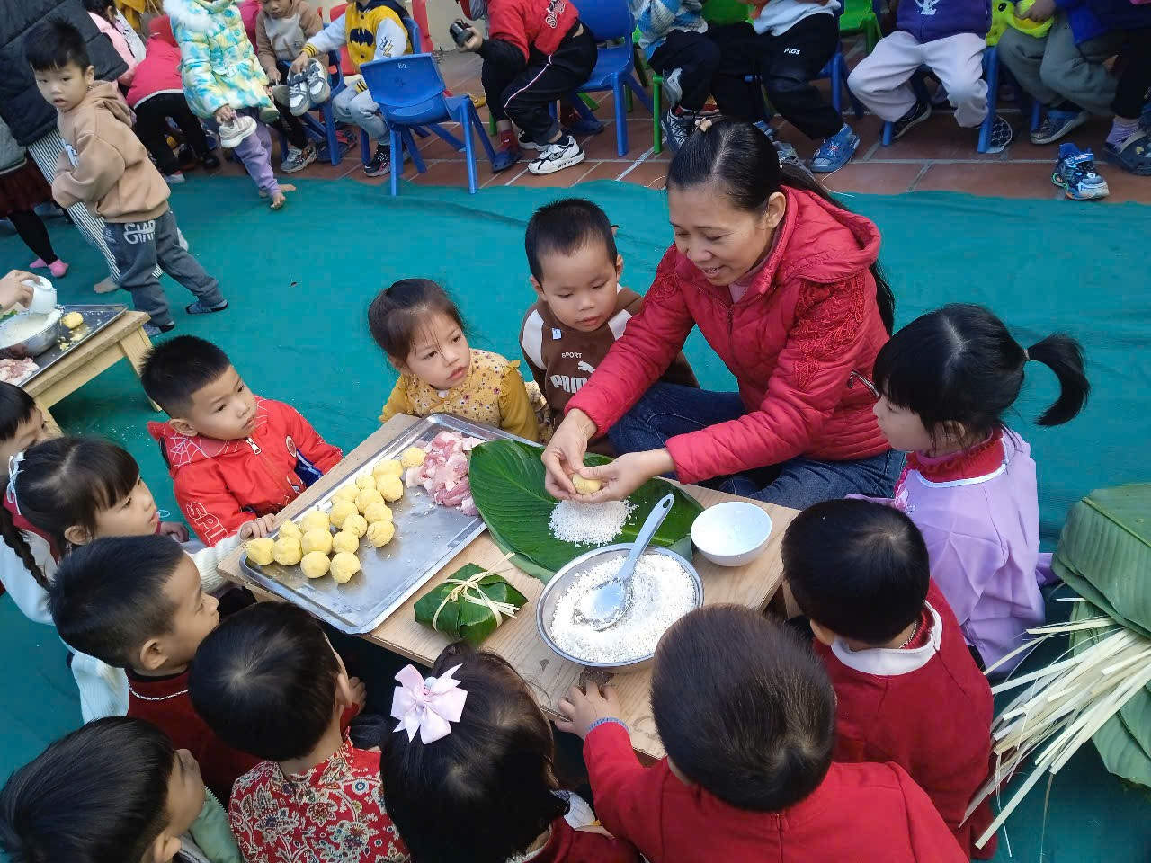 NGÀY HỘI GÓI BÁNH CHƯNG XANH CỦA CÔ VÀ TRÒ TRƯỜNG MẦM NON BÌNH MINH II