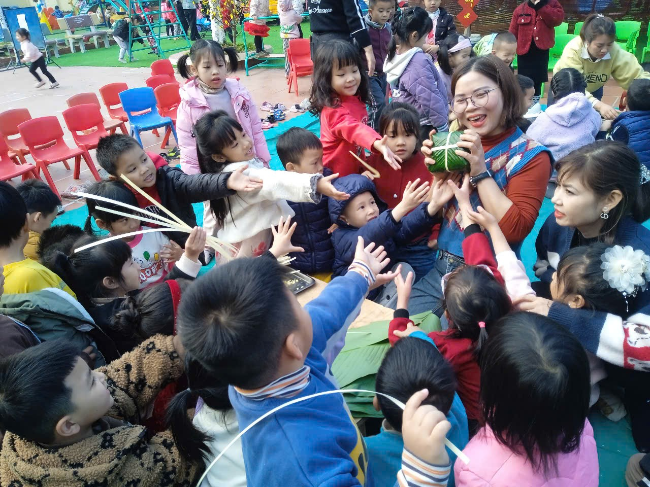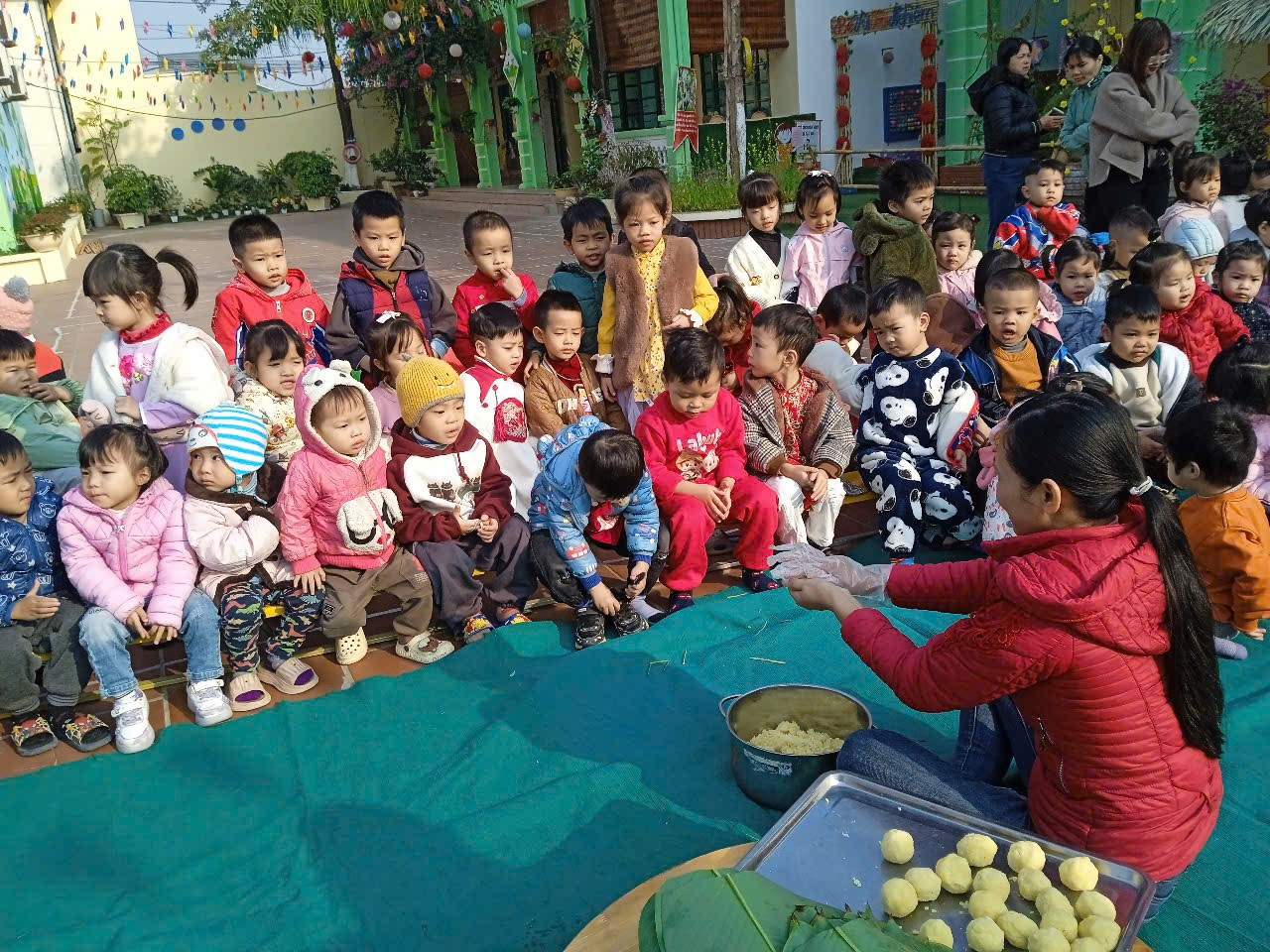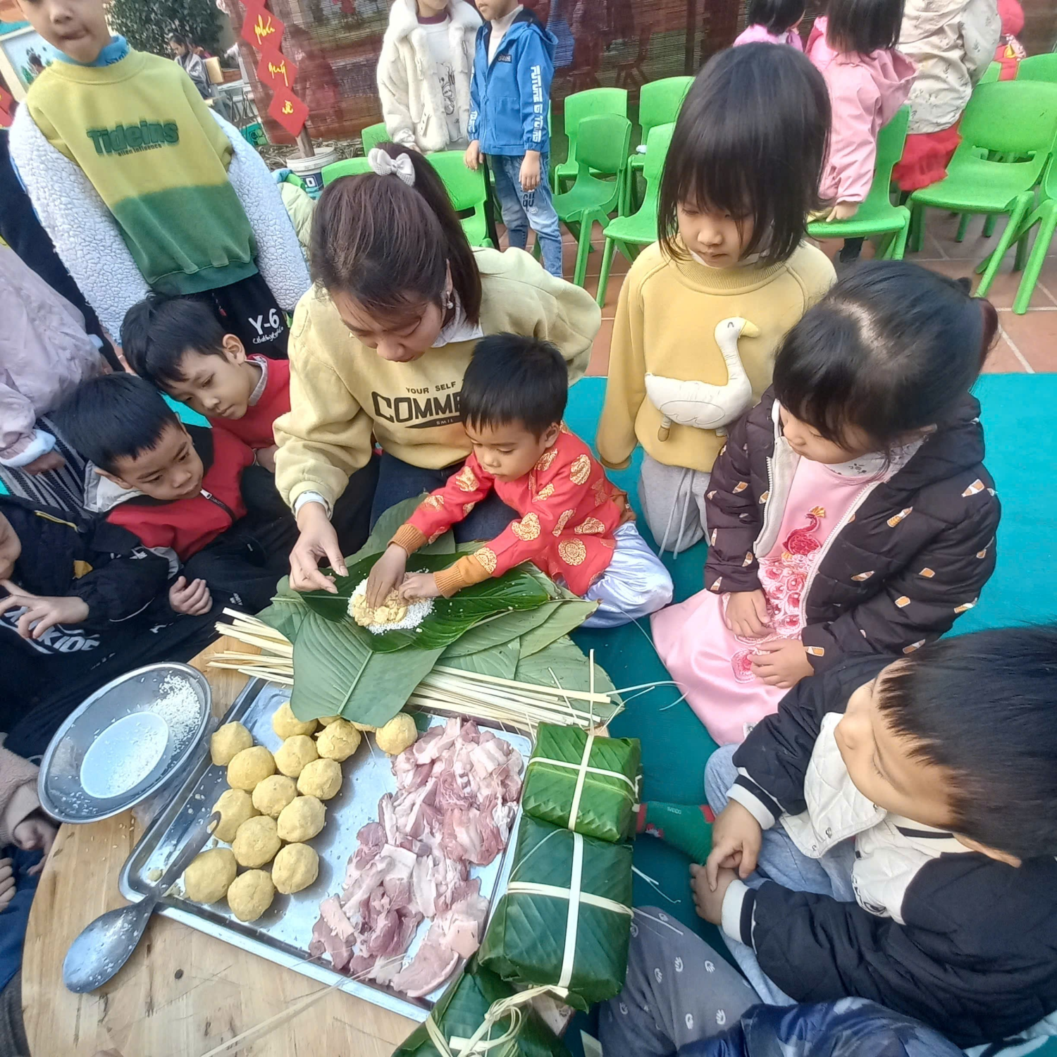 NGÀY HỘI GÓI BÁNH CHƯNG XANH CỦA CÔ VÀ TRÒ TRƯỜNG MẦM NON BÌNH MINH II