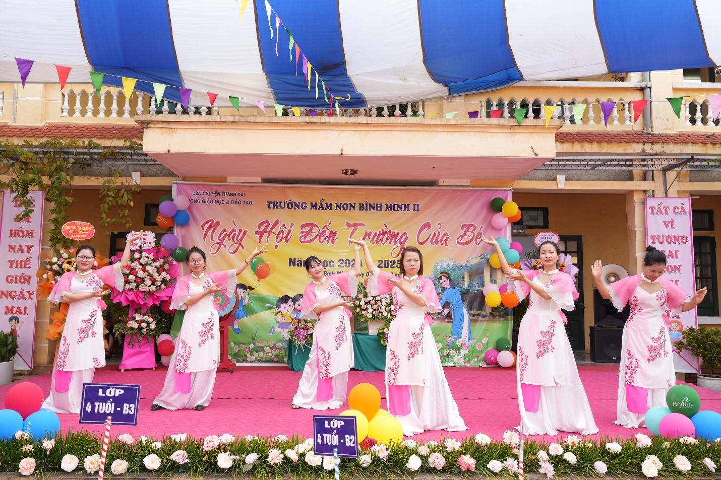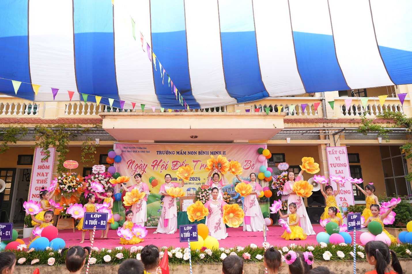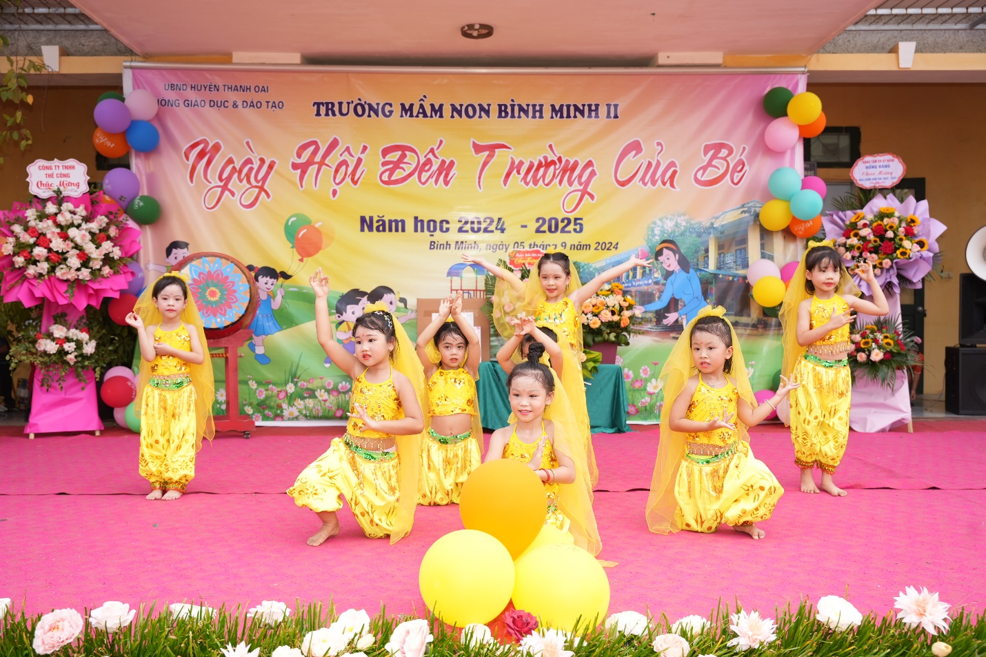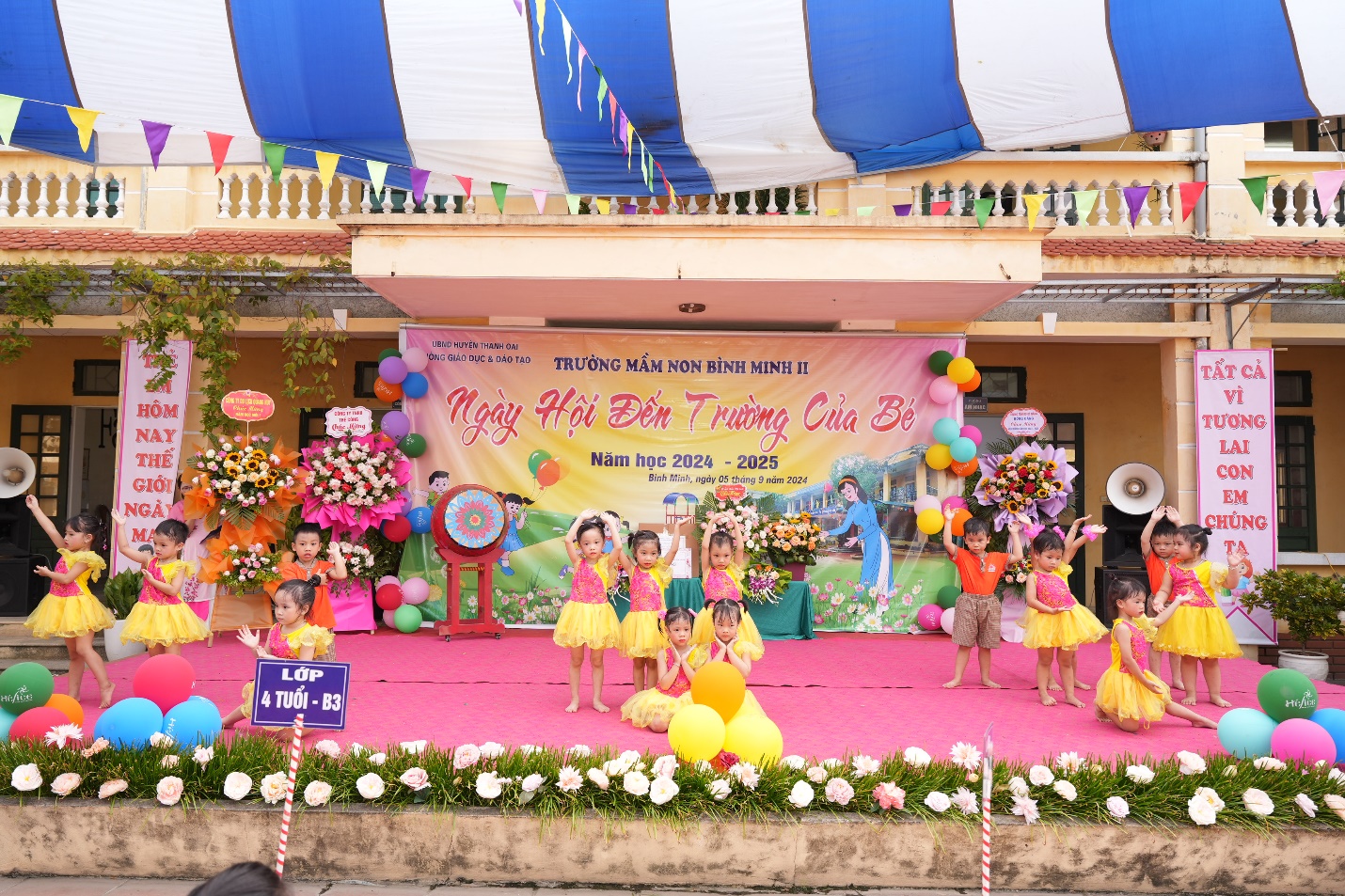 Tiết mục văng nghệ chào mừng năm học mới của các cô trường mầm non Bình Minh II. Phần lễ Khai giảng được nhà trường tổ chức đảm bảo trang nghiêm với các tuyên bố lý do; giới thiệu đại biểu; đọc thư của Chủ tịch nước Tô Lâm gửi thư chúc mừng ngành Giáo dục nhân dịp khai giảng năm học 2024-2025; diễn văn khai giảng năm học mới; đánh trống khai trường.