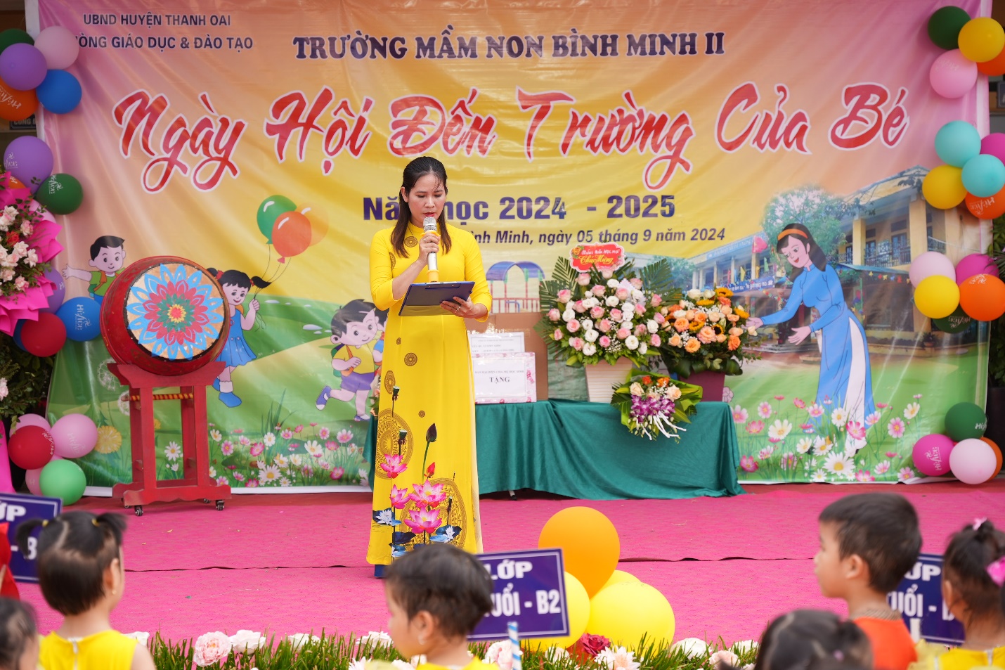 Sau những tháng hè nghỉ ngơi thư giãn, tiếng trống trường lại rộn lên báo hiệu năm học mới bắt đầu. Tháng 9 mùa thu đã vọng về giữa lòng thủ đô Hà Nội, hòa chung trong không khí rộn ràng reo ca của một mùa thu mới. Trong không khí tưng bừng của ngày hội toàn dân đưa trẻ tới trường, hàng triệu Giáo viên, Học sinh, Sinh viên trên cả nước lại cùng nhau bước vào cuộc hành trình khám phá tri thức mới. Thực hiện sự chỉ đạo của phòng GD&ĐT Thanh Oai, được sự nhất trí của các cấp các ngành hôm nay 9/5/2024 trường mầm non Bình Minh II long trọng tổ chức Lễ khai giảng đón chào năm học mới - Năm học 2024-2025. Tới dự lễ Khai giảng năm học mới có ông Nguyễn Chính Dân – Chủ Tịch Ủy Ban mặt trận tổ Quốc xã Bình Minh, Bà Trịnh Thị Nhung - Ban văn hóa xã Bình Minh. Các ông bà Đại diện cho Ban chi ủy, Banh lãnh đạo các thôn Chua; Quyếch; Đìa; Dộc; cùng các ông bà đại diện Hội Cha mẹ học sinh; Ban giám hiệu, giáo viên, công nhân viên nhà trường và 3 trăm em học sinh.