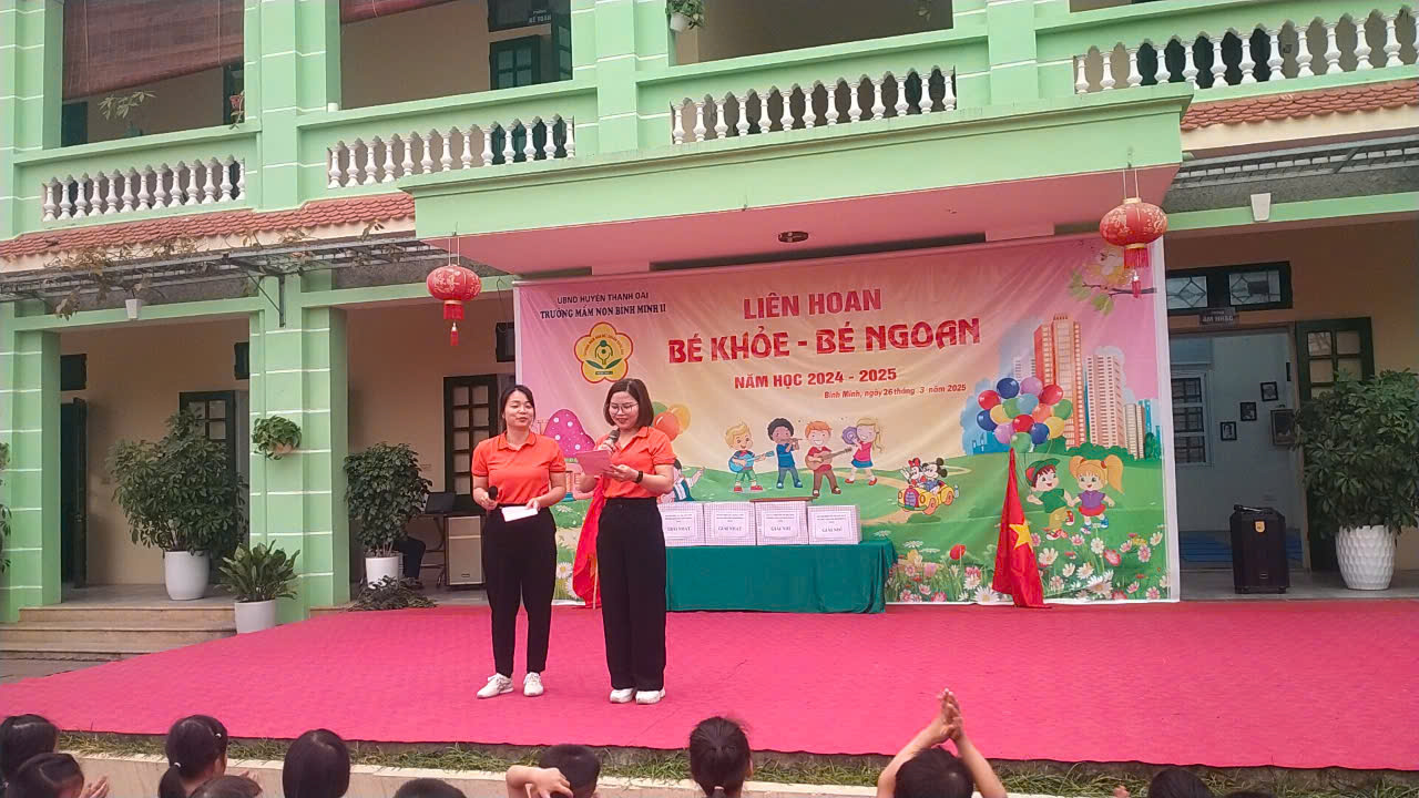 Liên hoan “Bé khỏe - Bé ngoan” đã khép lại trong niềm vui của trẻ và niềm tự hào của các cô giáo, phụ huynh học sinh. Đại diện Ban tổ chức xin gửi lời cảm ơn tới các cô, phụ huynh và các bé đã nhiệt tình tham gia và đóng góp vào thành công của chương trình. Đây không chỉ là phong trào, hội thi mà còn là dịp để lan tỏa thông điệp yêu thương, sự quan tâm và chăm sóc trẻ em - những mầm non tương lai của đất nước. Thể hiện chất lượng chăm sóc, nuôi dưỡng, giáo dục trẻ của các trường mầm non Bình Minh II .